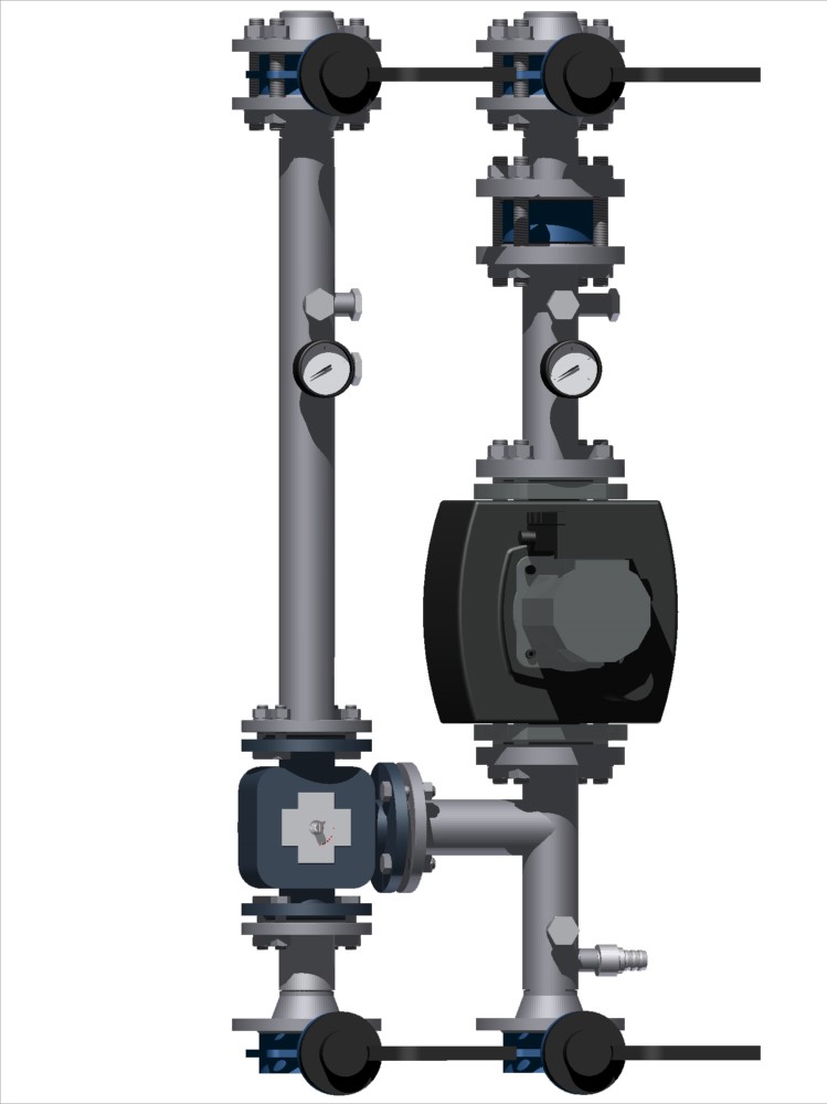 Модуль с насосом обеспечивает циркуляцию теплоносителя в системе. Насосы размещаются на подающей линии прямого отопительного контура.