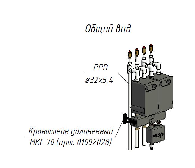 Специальная конструкция нового удлинённого усиленного кронштейна обеспечивает лёгкое прохождение труб за модулями и возможность опуска магистрали трубой диаметром 32 мм (ППР) ниже уровня модуля с установленной теплоизоляцией. Продуманная форма кронштейна облегчает монтаж и повышает надёжность крепления трубопровода. Удобен в эксплуатации и идеально подходит для организации скрытого размещения коммуникаций.