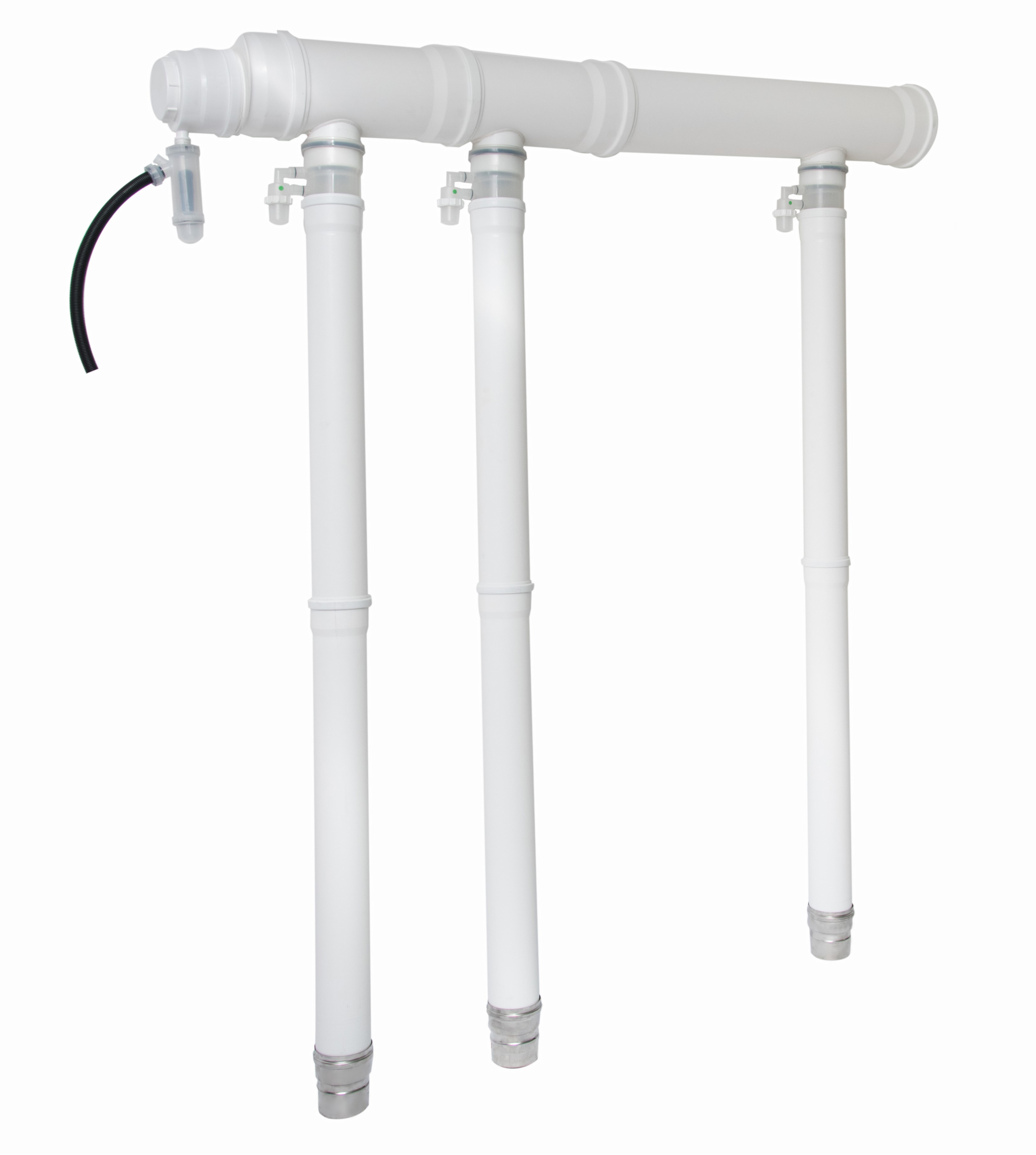 Материал полипропилен. Соответствует действующим европейским правилам EN 483, EN 14471. Класс давления системы Н1/5000 Па. Максимальная температура 110 ºС. Подходит как для влажных так и для сухих дымовых газов. Сифон для слива конденсата включен в комплект поставки. Подключения к котлам оснащены обратным клапаном для предотвращения перетока дымовых газов от работающего котла через неработающий в помещение.