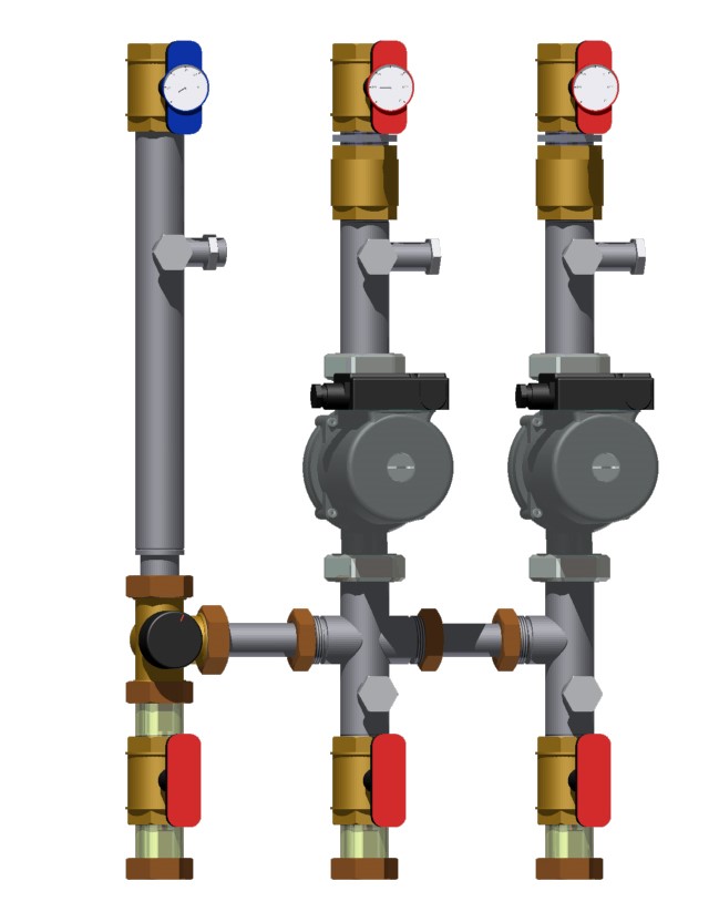 Модуль с насосом обеспечивает циркуляцию теплоносителя в системе. Насосы размещаются на подающей линии прямого отопительного контура.