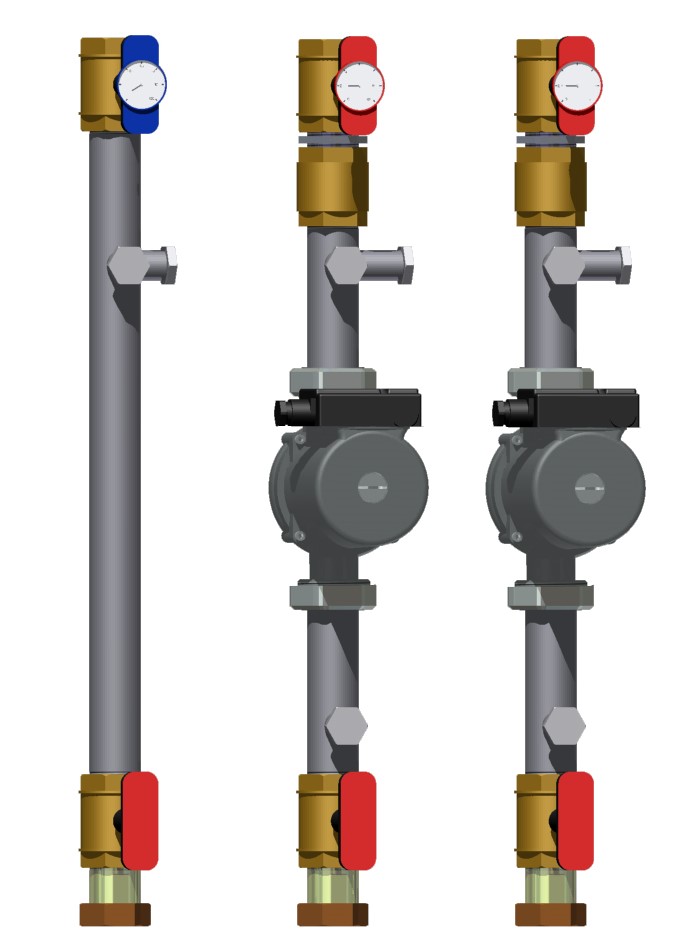 Модуль с насосом обеспечивает циркуляцию теплоносителя в системе. Насосы размещаются на подающей линии прямого отопительного контура.