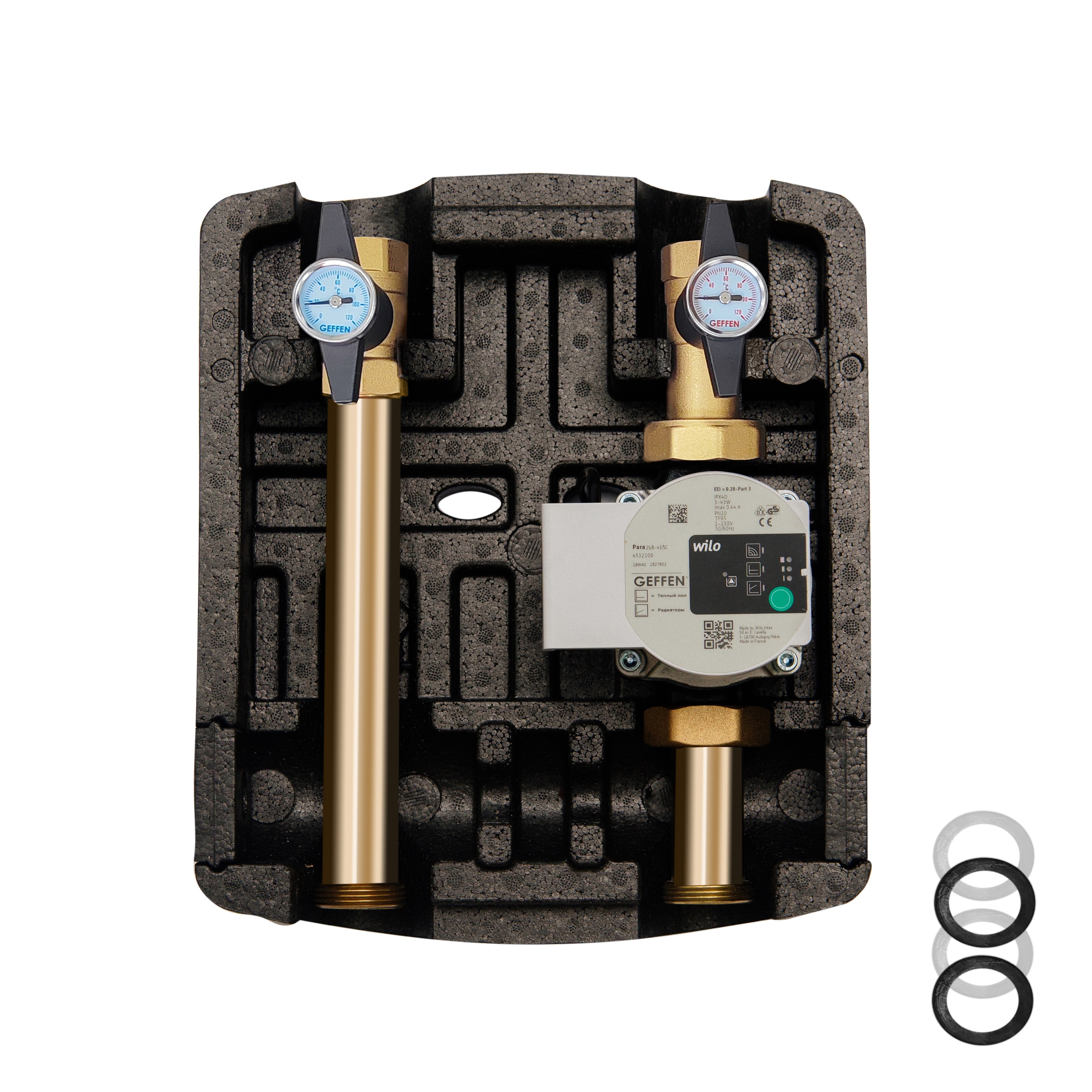 Модуль прямой с энергоэффективным насосом обеспечивает циркуляцию теплоносителя в системе. Насосы размещаются на подающей линии прямого отопительного контура. Подключение к системе DN 25 – 1" внутренняя резьба. Отапливаемая площадь для радиаторного отопления 0-400 кв.м.(0-40кВт)