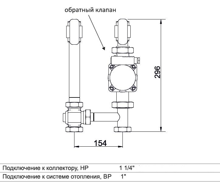 Модуль смесительный с насосом обеспечивает циркуляцию теплоносителя в системе. Насосы размещаются на подающей линии прямого отопительного контура. Трехходовой клапан обеспечивает необходимую температуру теплоносителя. Подключение к системе DN 25 - 1" внутренняя резьба. Отапливаемая площадь для теплого пола 90-120 кв.м.(9-12 кВт), для системы радиаторного отопления 210-260 кв.м.(21-26 кВт)