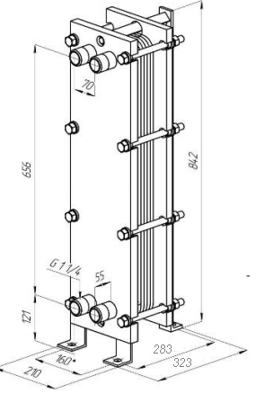 Теплообменник разделительный 156 кВт, разборный, нержавеющий AISI 316