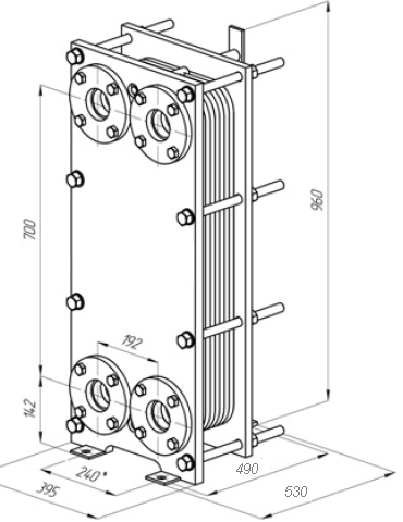 Теплообменник разделительный 280 кВт, разборный, нержавеющий AISI 316
